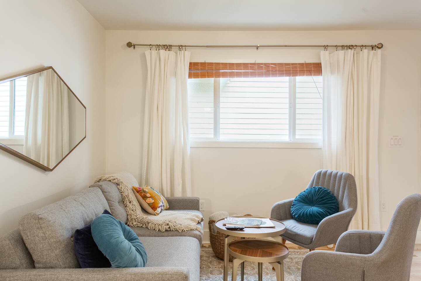 This space is compact, but feels large and very well-designed to be very comfortable for groups of 6. Just keep in mind that there's only 1 bathroom. We've had plenty of groups of 6 stay here with no problems, but it's good for everyone to know that before they get here (: